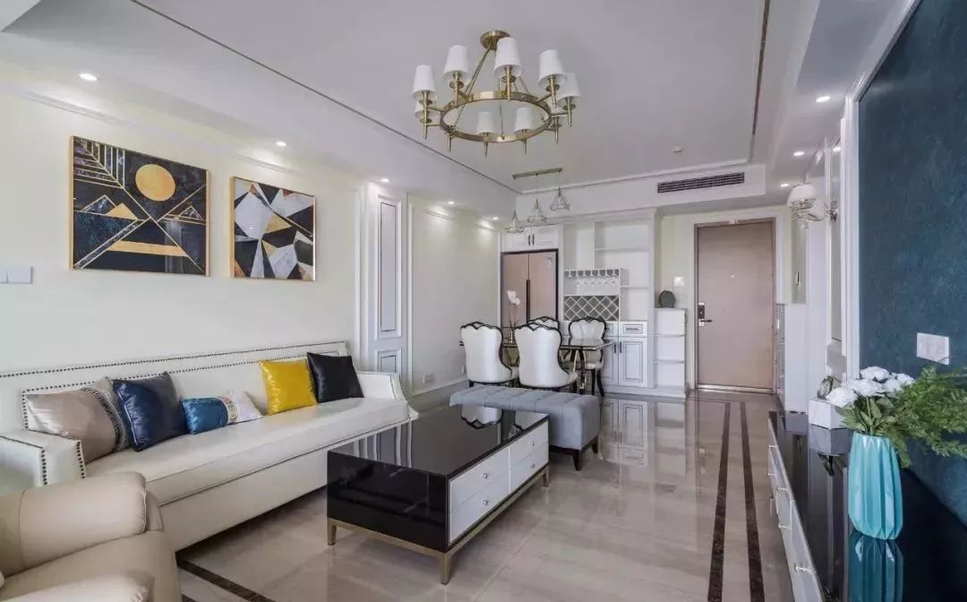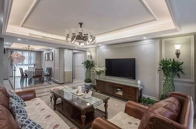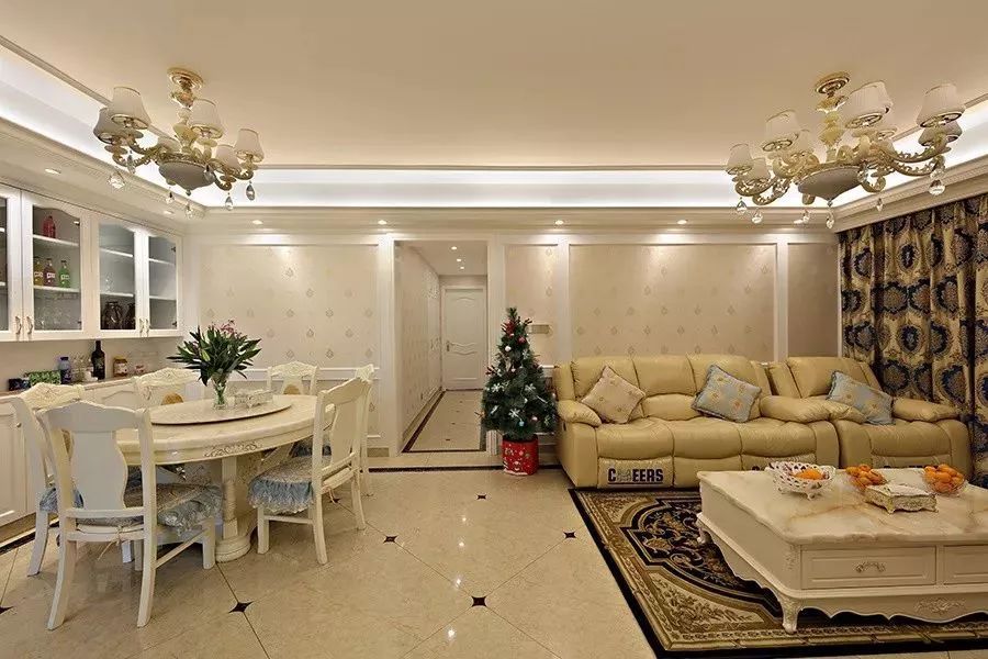 所謂地面分隔,就是在地面磚上做邊線造型,這個做法通常都是綜合了墻面、天花一起到的,適合一些相對較大面積的客餐廳區(qū)域。