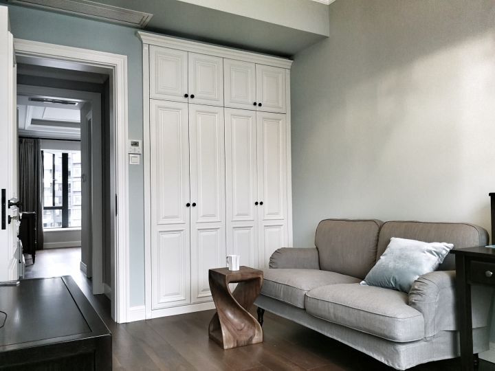 美式是非常講究對稱的,這里的墻面石膏線做成“呂”字形,用來打破單調(diào)的感覺。美式講究對稱,這樣才極大程度上滿足視覺上的感受。中式青花系列的點綴其中,絲毫不覺得格格不入,反而脫穎而出,沉穩(wěn)又雅靜。