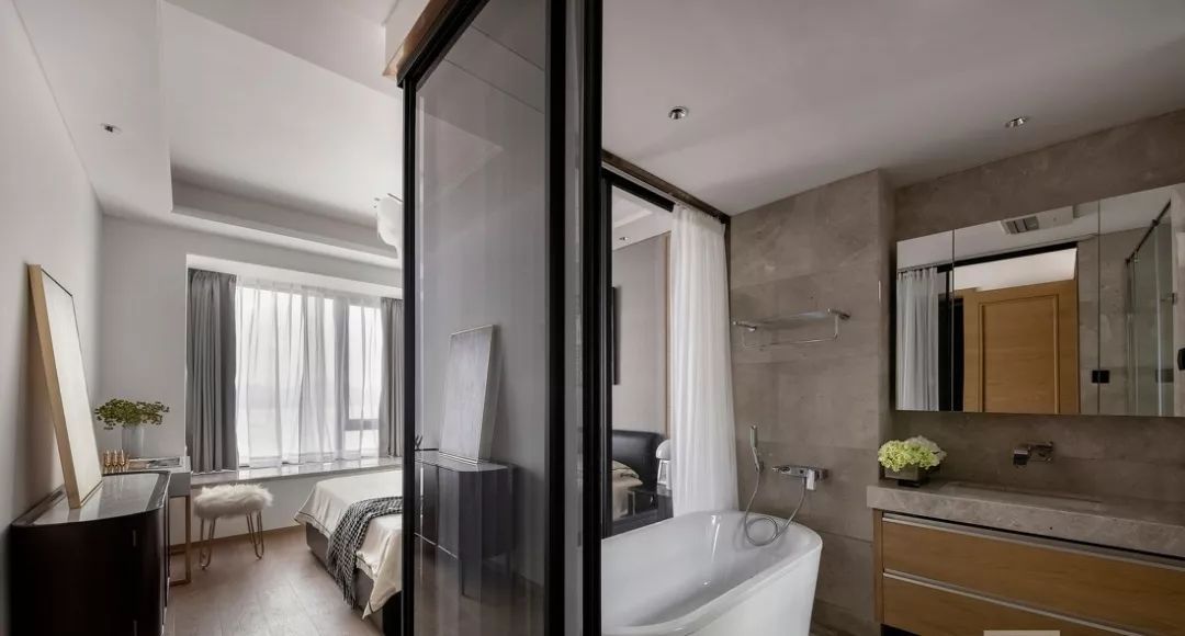要想達(dá)到干濕分離,又想要美觀好看。如果衛(wèi)生間面積夠大,可以考慮“三分離”,即洗面柜區(qū)、馬桶區(qū)、淋浴區(qū)獨立分開。而“三分離”的設(shè)計師,需要衛(wèi)生間面積在6.2㎡以上。