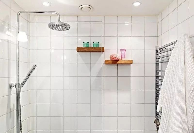 1、墻面可以掏個洞(壁龕),平時用到的沐浴露、洗發(fā)水、洗面奶等,都可以放到這個位置,沒必要買那么多的墻上掛架。