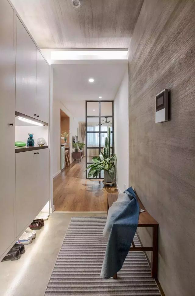 過(guò)道在戶型里算是一個(gè)較為雞肋的空間,但它作為動(dòng)靜區(qū)交流的必須空間又不得不保留著,如果想要利用一下這個(gè)空間的話,那么入墻式的收納,結(jié)合過(guò)道墻后的臥室衣柜一起設(shè)計(jì),既可以實(shí)現(xiàn)收納,又能實(shí)現(xiàn)隔音隔墻功能。