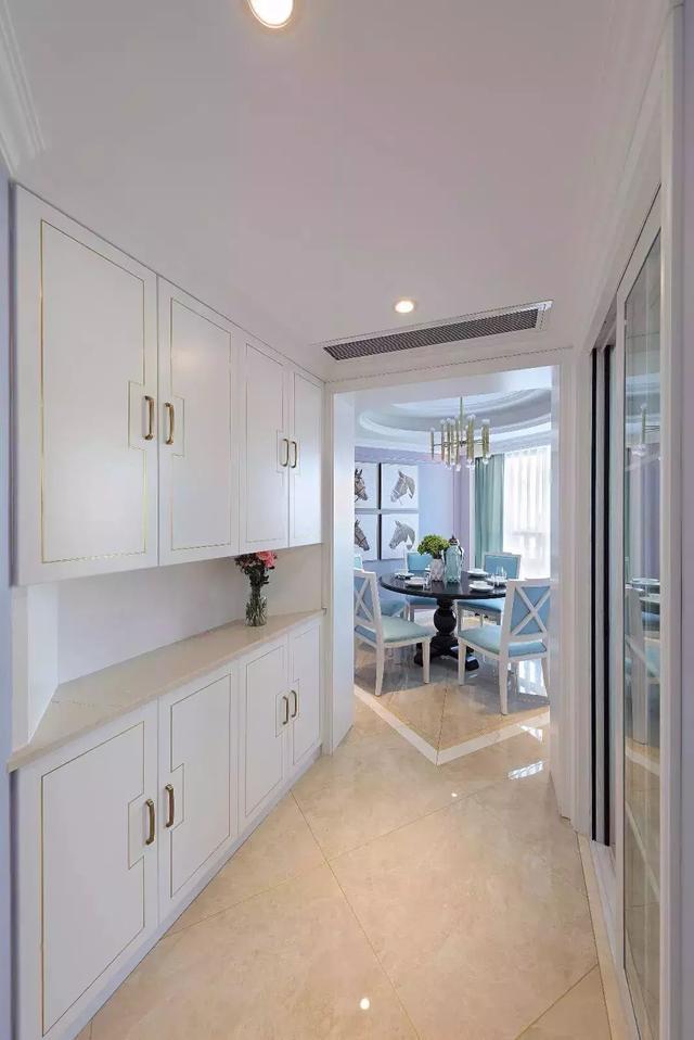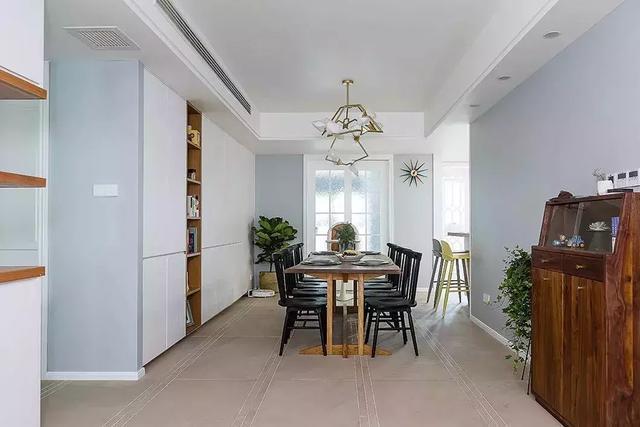一些比較緊湊的戶型里,餐邊柜如果直接擺放的話,那么餐廳的布局就會(huì)顯得很局促,這個(gè)時(shí)候開(kāi)發(fā)一下餐廳旁邊的墻體空間,裝個(gè)入墻式的餐邊收納柜,把空間利用到位,同時(shí)又能保持活動(dòng)區(qū)的寬松舒適。