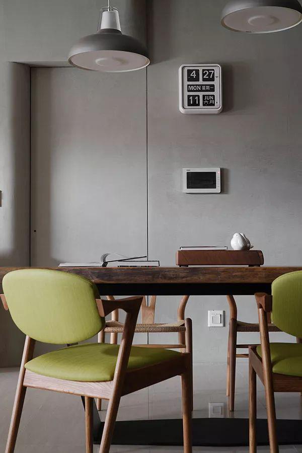 ▲餐廳與客廳連通,地面與客廳不同的是鋪著地磚,搭配上端莊的小資范餐桌,綠色布藝坐墊的餐椅,還有2盞綠色長(zhǎng)桿吊燈,顯得清新簡(jiǎn)約好大氣。