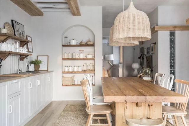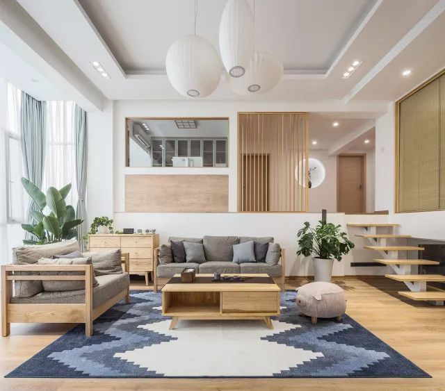 在配飾元素上會拋棄設計感較強的北歐元素,選擇以溫潤的藤編或木頭為主,還有布藝的運用也是主要特征之一。