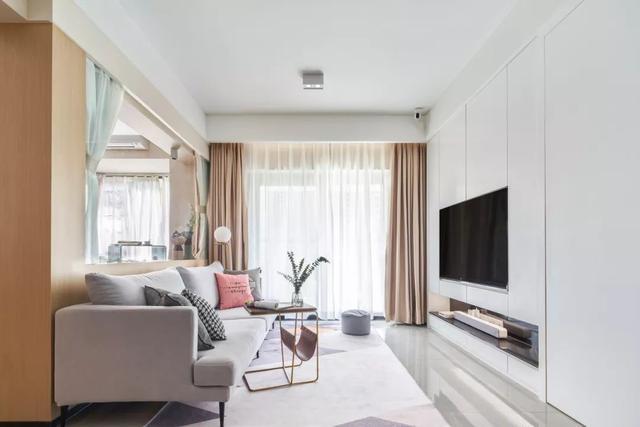 ▲整個(gè)客廳的氛圍呈現(xiàn)出的感覺是現(xiàn)代舒適的,嵌入式的電視墻柜,美觀又實(shí)用,選用白色的柜門板也讓空間看起來大了很多。