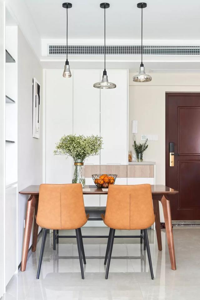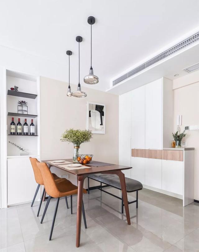 ▲餐桌靠墻擺放,擴(kuò)大了過道的面積,同時(shí)也讓餐廳面積看起來更大。