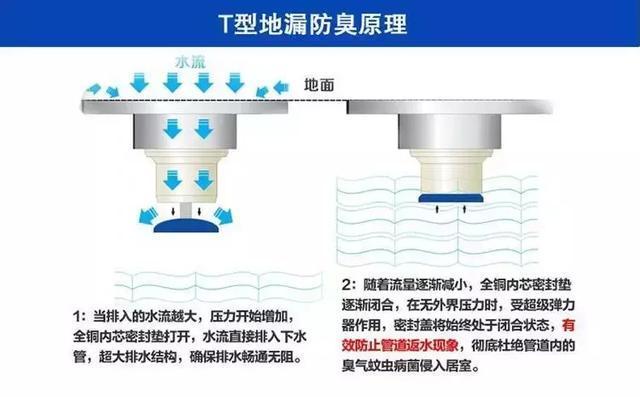 自封地漏中,T形地漏芯的防臭防蟲效果好、排水速度較快,沒有水封式易積留臟東西的缺點,但金屬材質(zhì)的價格會較貴。