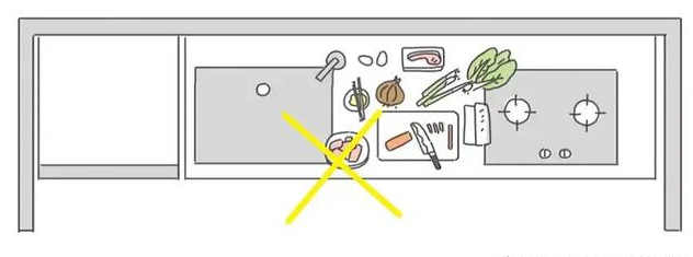 誤區(qū)2 ) 操作臺(tái)面沒(méi)留白,做菜好擠