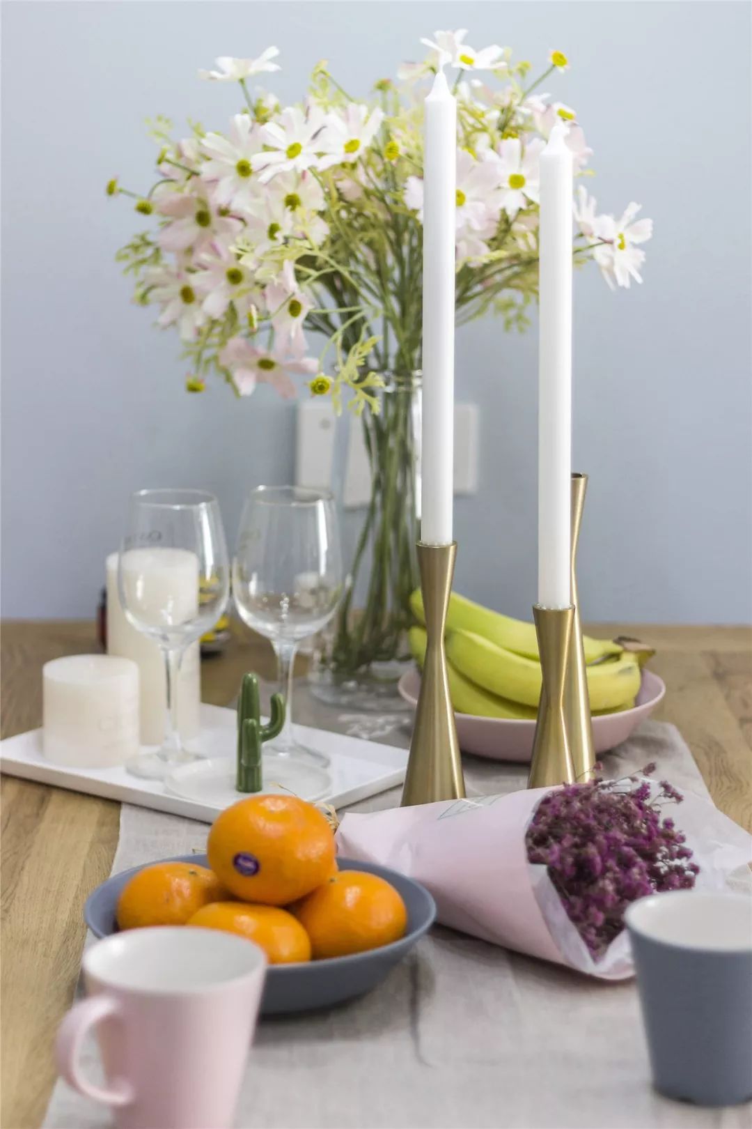 ▲ 客廳看向餐廳,綠植與花束隨處可見,配以超美的軟裝,整體清新不失雅致。