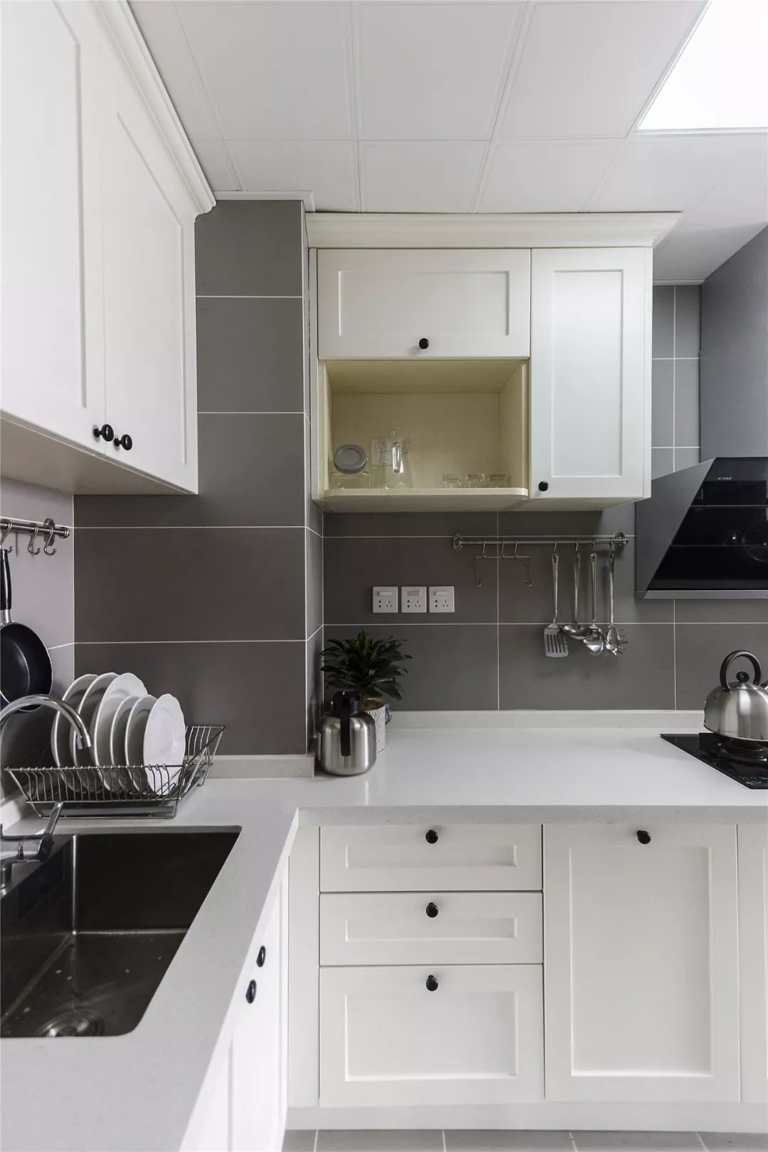 ▲ L型櫥柜將廚房中每一寸空間都完美利用,整體干凈而明亮。