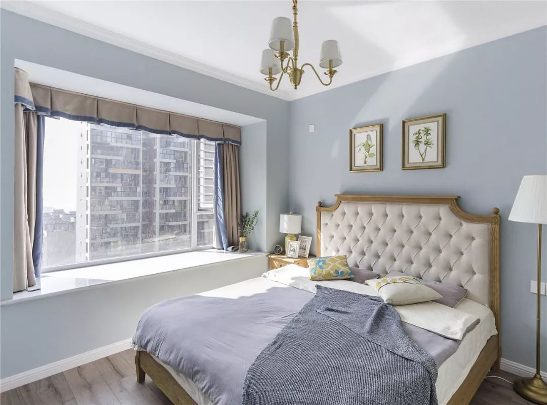 ▲ 主臥以藍(lán)色和白色為主調(diào),柔和而雅致。飄窗不僅增加了收納功能,也是看看書或者發(fā)發(fā)呆的愜意去處。