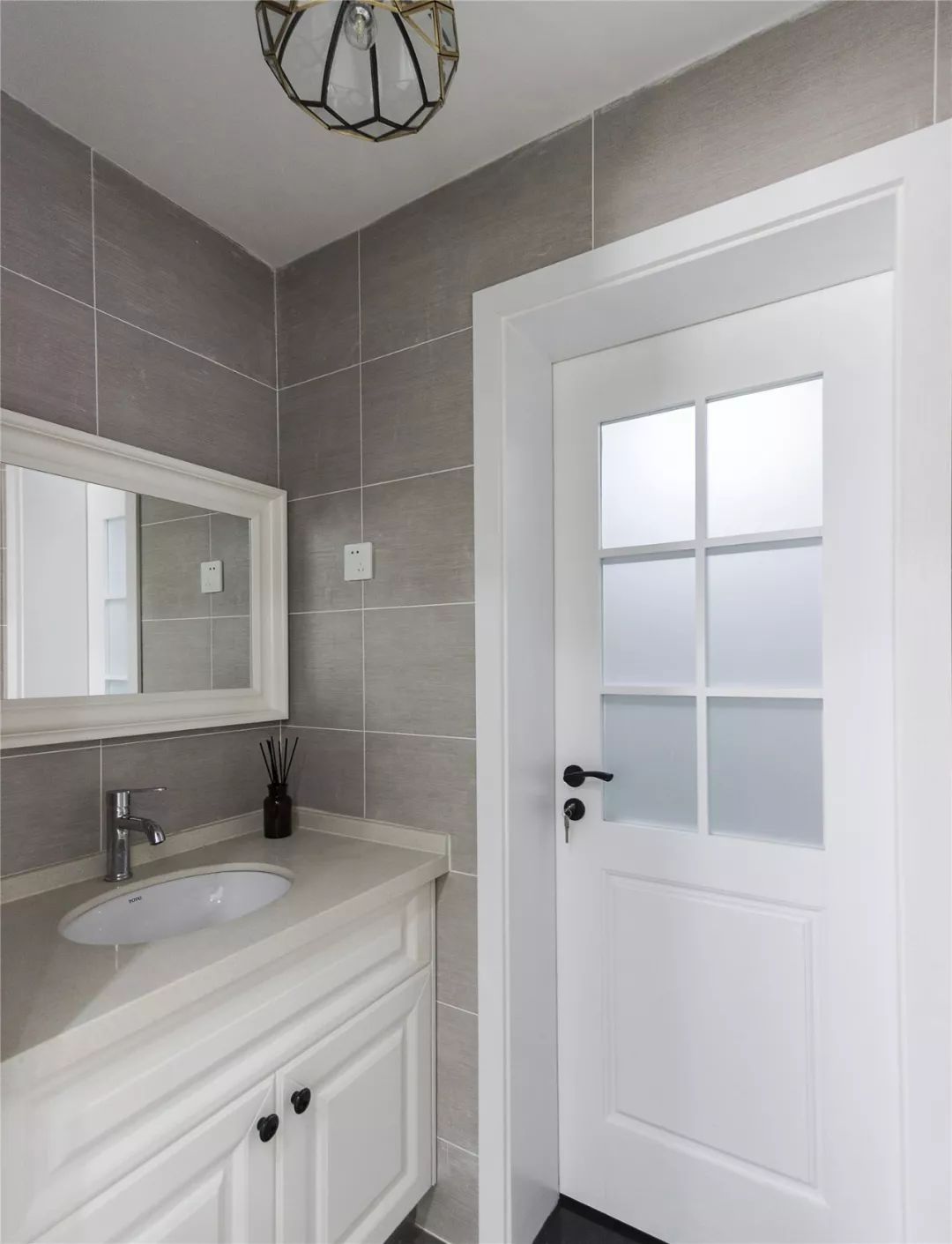 ▲ 衛(wèi)生間采用簡約的灰白色調(diào)搭配,大理石臺面的白色浴室柜具有強大的收納功能,簡潔明了的空間布局,治愈強迫癥。