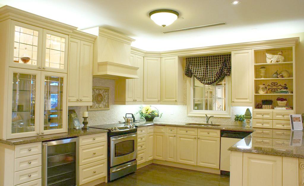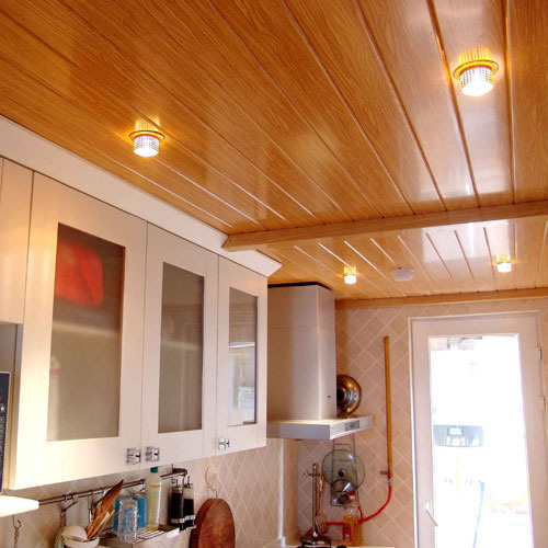 廚房的吊頂一定要采用防水的鋁扣板來安裝,這樣就可以防止吊頂變潮濕。廚房是一個容易藏污納垢的地方,所以最好不要有夾縫。因為天花板容易凝聚水蒸氣或油煙,所以將吊柜直接接到天花板上,這樣就既美觀又可以防止天花板變臟。吊頂最好不要太高,也不要太低,因為太高不容易打掃衛(wèi)生,太低也容易臟。