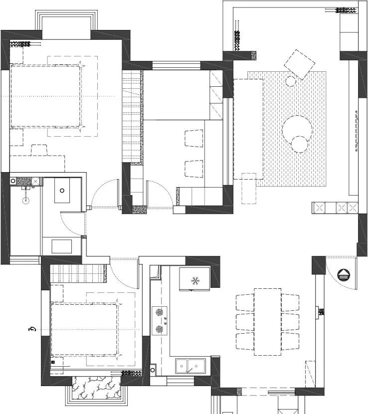 ▲ 建筑面積110平,改造后的住宅融合北歐風(fēng)格與現(xiàn)代風(fēng)格,采用對(duì)比色軟裝以增加空間活潑性
