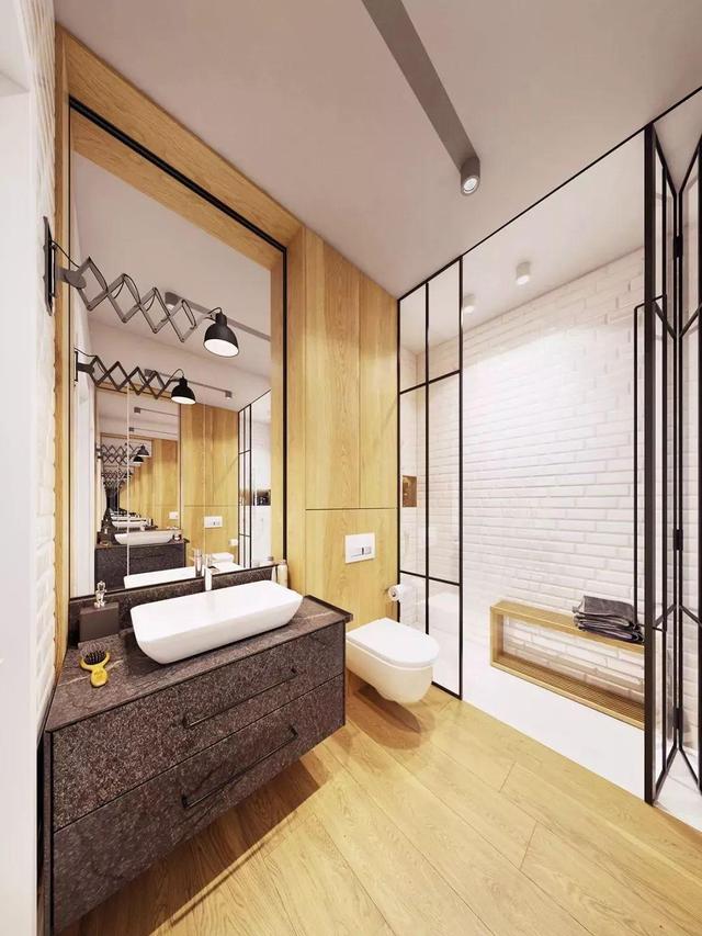 衛(wèi)生間加大鏡面范圍,可以補(bǔ)充光源?;蛘咴阽R面背后安裝光源,會令空間顯得更明亮一些。衛(wèi)生間的門,最好使用透光的材料,比如大面積的磨砂玻璃等,可以增加室外光源的透光度。