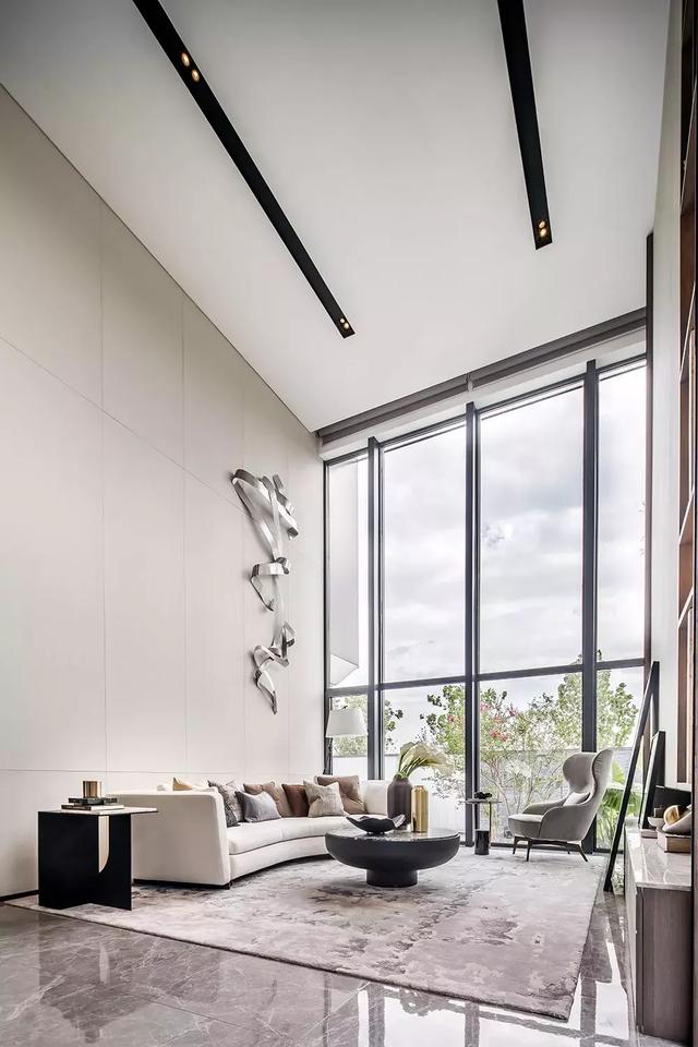 例如,在被中央空調(diào)、新風(fēng)系統(tǒng)占用了部分層高的客廳,“無(wú)主燈”設(shè)計(jì)一方面拔高了層高,另一方面,打掃起來(lái)也非常便捷。