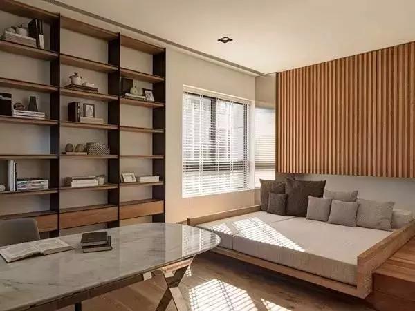 用開(kāi)架而不是傳統(tǒng)帶門實(shí)木柜子,會(huì)讓你的房間通透得多。因?yàn)殚_(kāi)架相對(duì)占空間比較小,而且呈現(xiàn)一種開(kāi)放的姿態(tài)。木質(zhì)的傳統(tǒng)柜子,看起來(lái)又大又笨重。