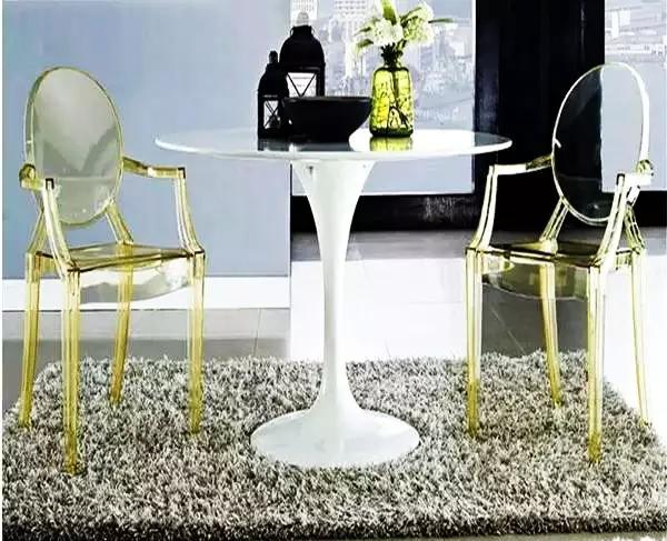 比如以白瓷花瓶代替木制花器,選擇反光金屬質(zhì)地的燈具而不是美式黑色鐵藝燈,擺個(gè)亞克力的椅子,通透輕盈的質(zhì)感會(huì)讓你的小黑屋瞬間變亮。