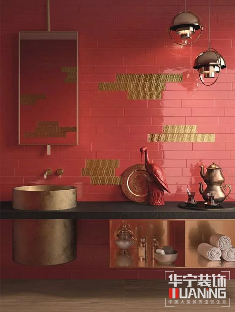 可以在腰線、功能區(qū)中心加一點(diǎn)馬賽克,空間高級感立刻凸顯。