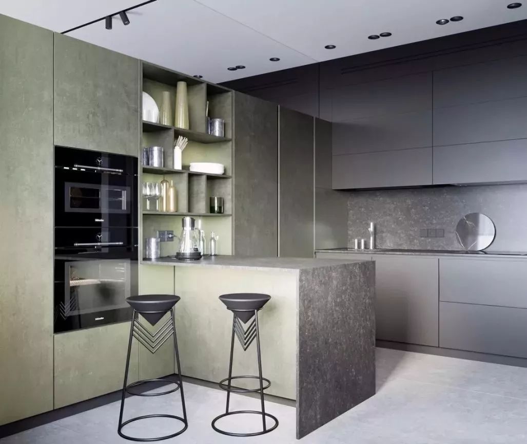 綠色系是一種充滿生命力的色彩,低調(diào)靜謐中傳遞著一股濃郁的自然氣息。為時尚的廚房空間注入一絲活力的青綠色調(diào),營造出符合男士品位的摩登look,那么整個廚房氣質(zhì)就會瞬間提升,更添一份靈動與雅致的魅力。