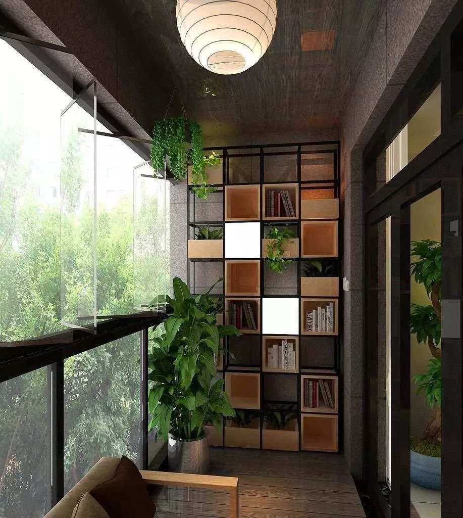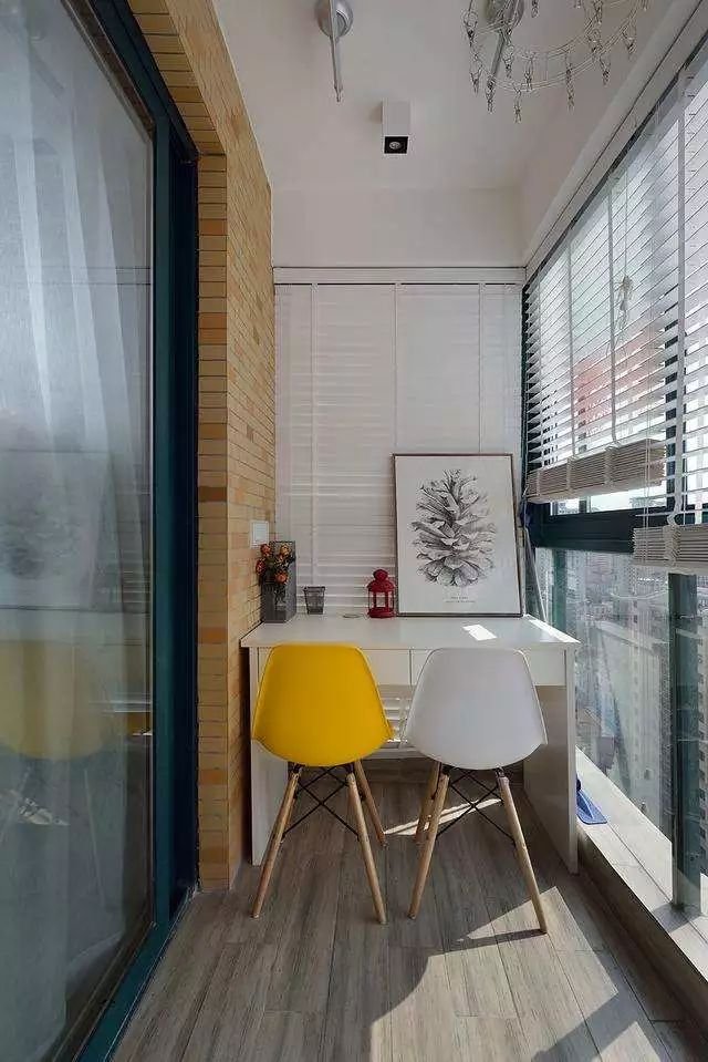 我們可以在陽(yáng)臺(tái)的一角做個(gè)轉(zhuǎn)角書桌,并且在上方作一個(gè)書柜,下面則是可以寫字臺(tái)或者收納柜,這樣既可以將墻角這個(gè)空間好好利用起來(lái),還能為主人多添加一個(gè)閱讀區(qū),并且還能巧妙的將客廳與陽(yáng)臺(tái)分隔開來(lái)。