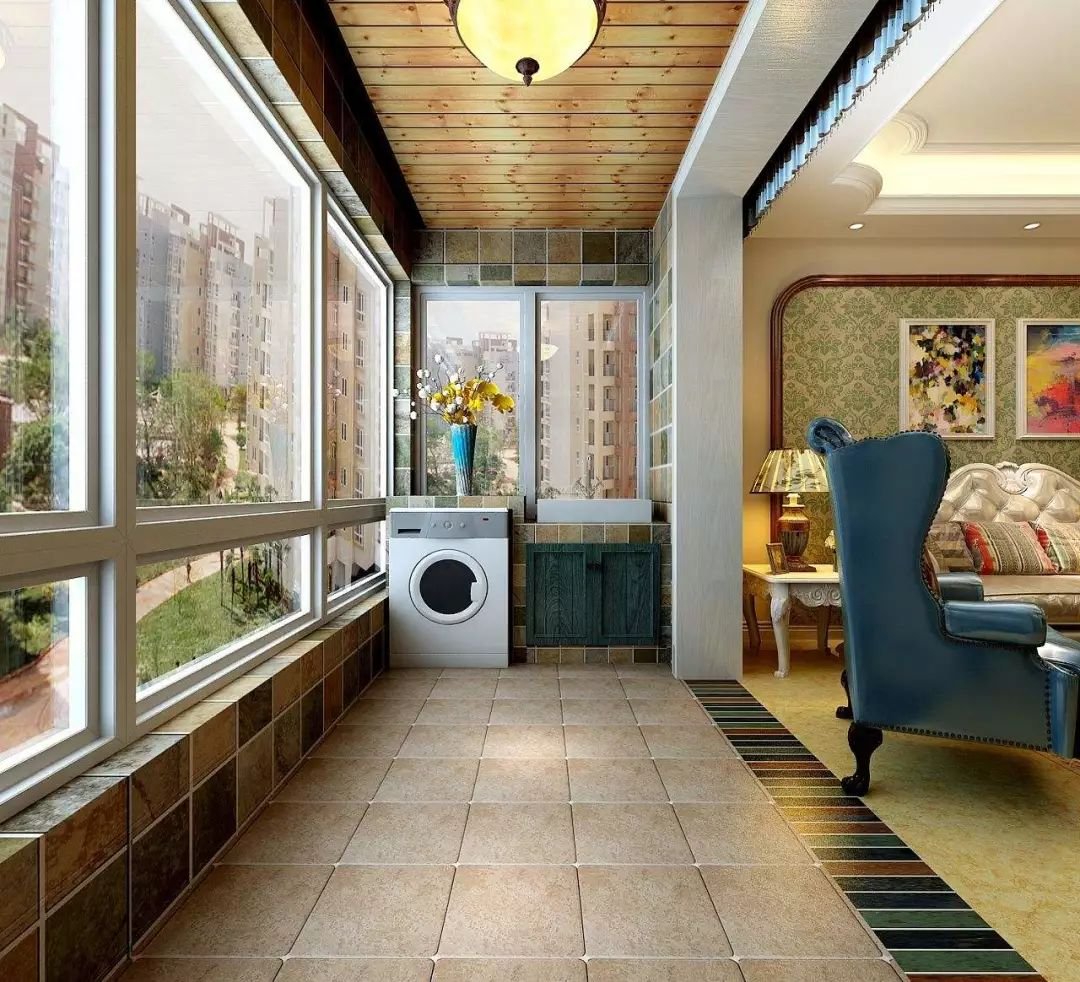 由于這兩個(gè)區(qū)域之間沒有門和墻體作遮擋,因此即使我們?cè)趶d堂中也能將陽(yáng)臺(tái)的景色盡收眼底。如果陽(yáng)臺(tái)上有暴露的水管則會(huì)顯得很不雅觀。因此陽(yáng)臺(tái)需要吊頂,這樣可以把陽(yáng)臺(tái)頂面上的管道,頂面有高低不平、陰角不夠等現(xiàn)象進(jìn)行遮擋隱藏,可以讓陽(yáng)臺(tái)看起來(lái)更美觀,也方便打掃。
