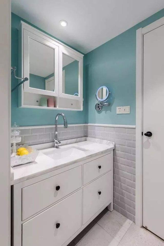 如果你想不開,也可以勉強在這里使用防水乳膠漆。這種乳膠漆上濺上少許水后不用管,等它自己干了就行了,不會留下痕跡。但如果有大量水沖刷到墻面上,乳膠漆就不行了。