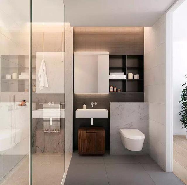 除了墻體內(nèi)嵌裝修,壁掛式的衛(wèi)浴產(chǎn)品也是解決小戶型衛(wèi)浴空間難題的寶貝。洗手臺、馬桶、收納架都能懸掛在墻面上,縮小占地面積能夠平衡寬敞度,看起來沒有那么占空間。