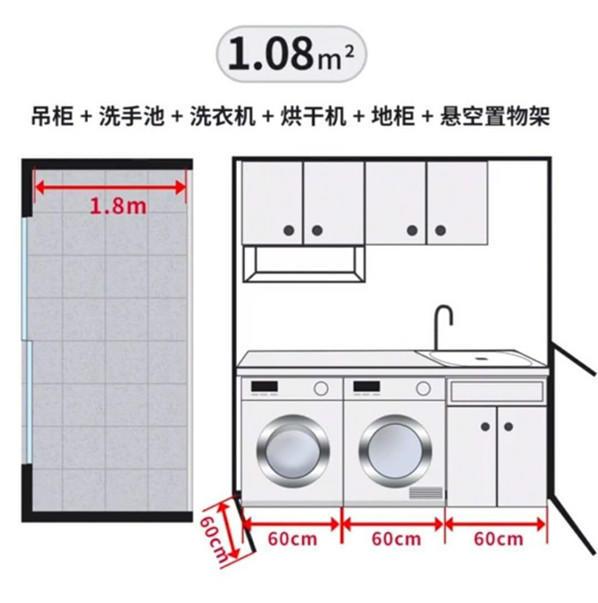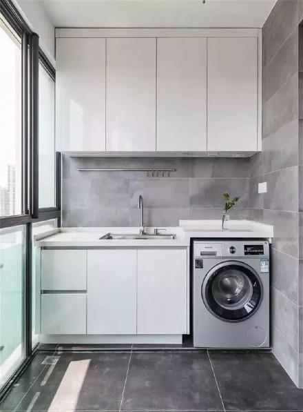 ▲洗衣池+吊柜的設計是最為常見的一種設計,非常適合小戶型家庭。柜體還預留了洗衣機的位置,整體看起來非常整潔干凈。顏值和實用性都很不錯。