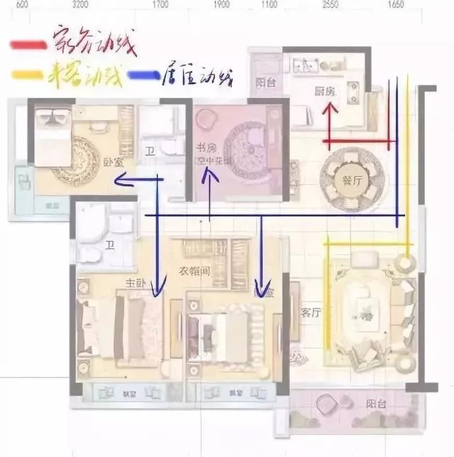 (1)動線合理:關(guān)于動線,我們之前的文章《裝修房子,如何設(shè)計布置動線?》也有介紹過整體室內(nèi)設(shè)計的動線布置原則,在于家務(wù)動線而言,肯定都是越短越好的。
