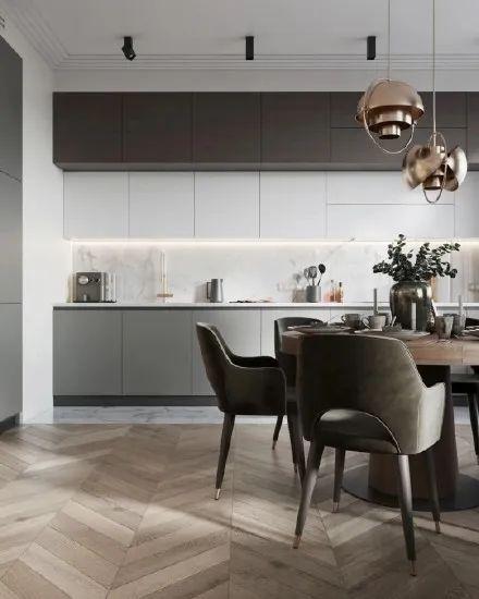 上及天花板,下垂地板才能自帶延伸效果,制造一種更大的空間感。