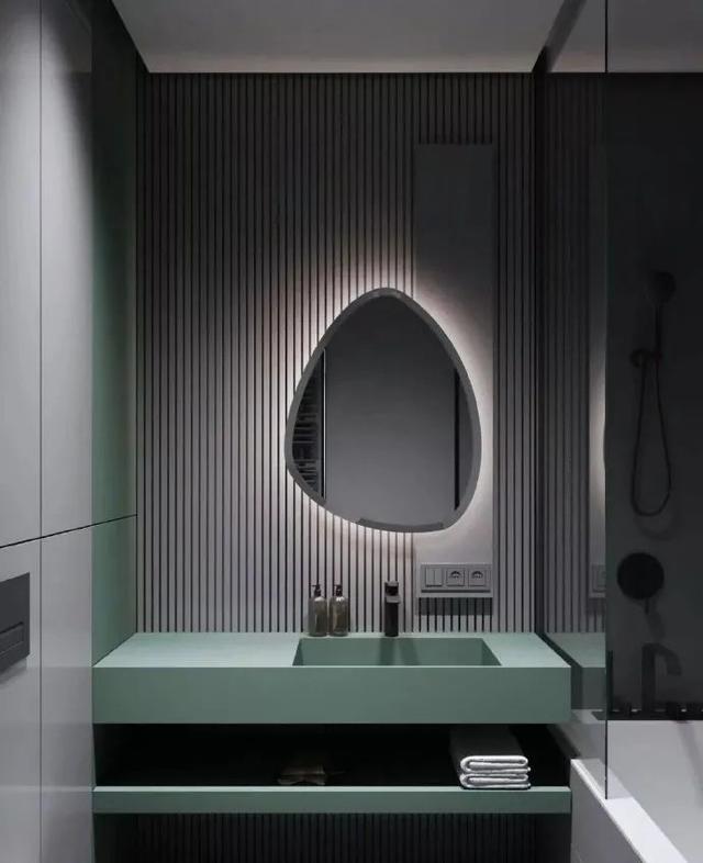 另外把豎條紋元素用在隔斷上,也有同樣效果。