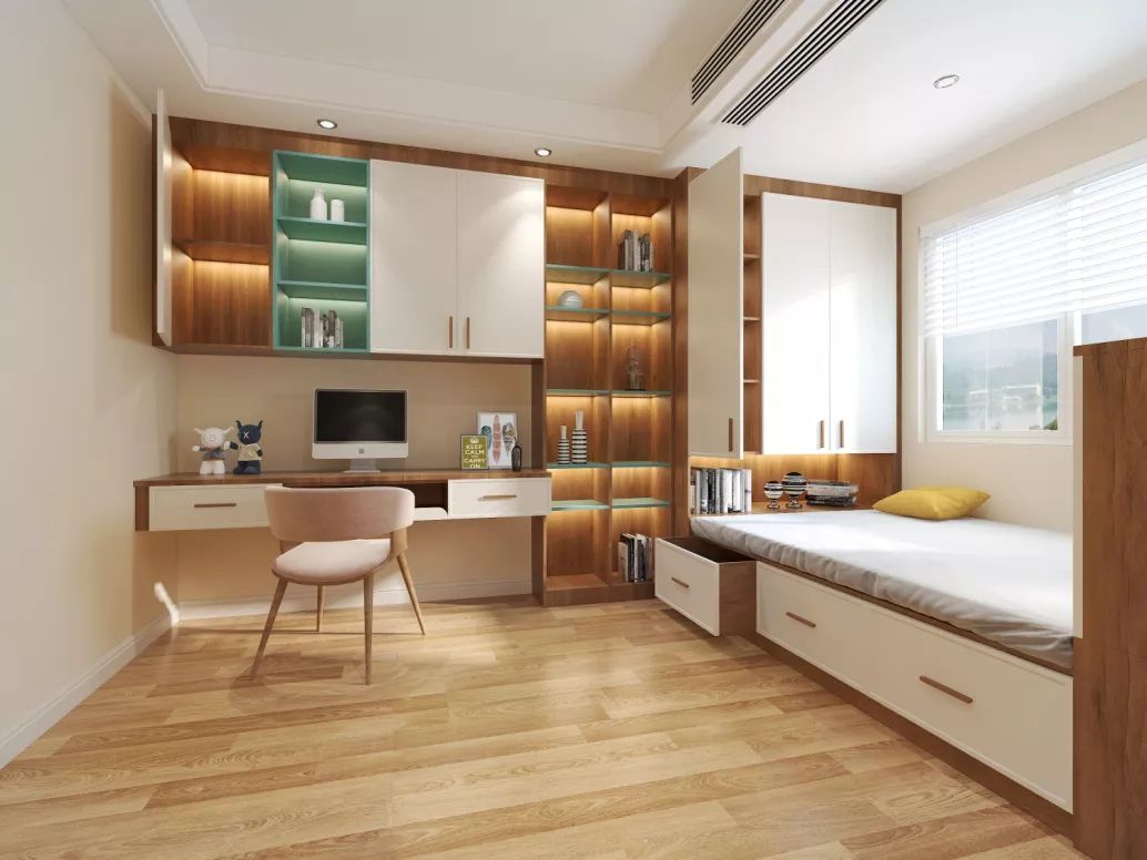 側(cè)重于功能塑造和空間優(yōu)化的定制家具,能夠很好地緩解屋主的收納壓力。在有限空間發(fā)揮最大功能,例如定制衣柜、書桌、榻榻米等一體式家具,能讓空間輕松擴容20%。