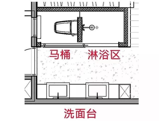簡單來說,除了干濕分離區(qū)外,再將洗漱臺單獨分離出去(就是將洗漱臺挪到衛(wèi)生間外面),讓洗漱和沐浴徹底分開,既節(jié)約時間又保證了衛(wèi)生。