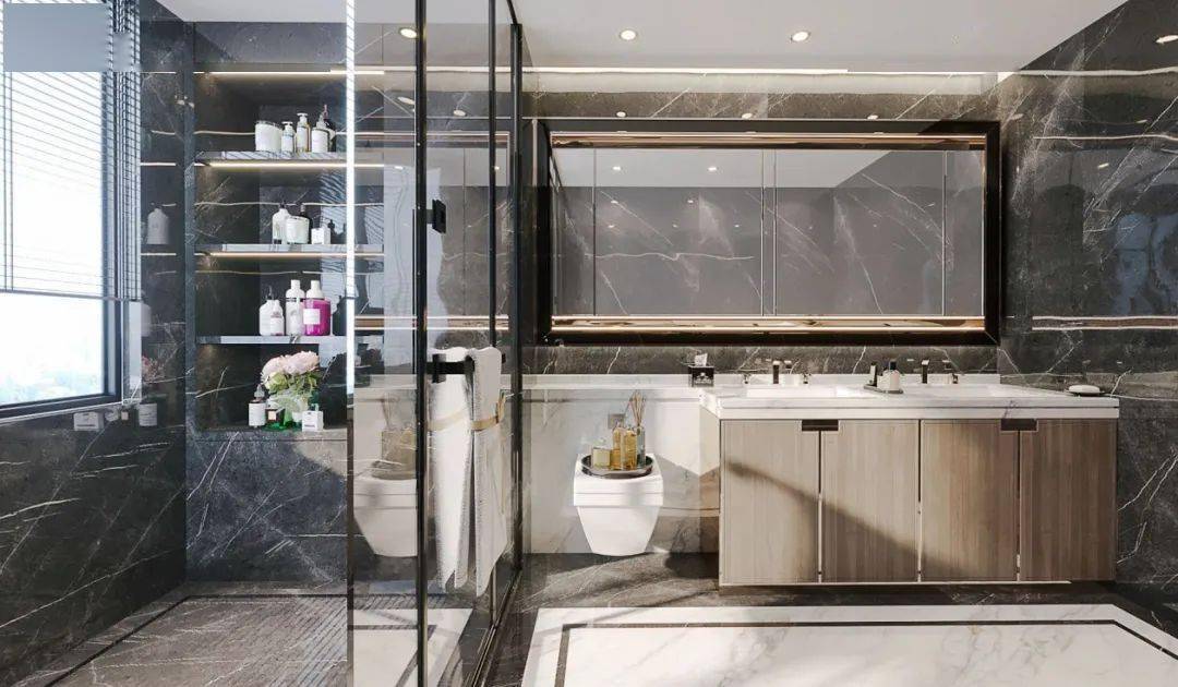 增加衛(wèi)生間使用效率,家人洗澡的同時,其他家庭成員可以利用干區(qū)位置,洗漱、洗澡互不干擾。