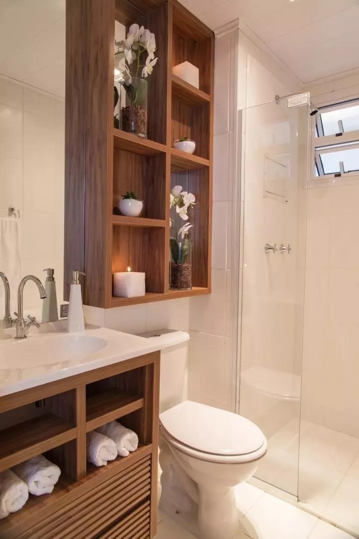 3、擱架上可以擺衛(wèi)浴用品+裝飾品,讓小衛(wèi)生間更加美觀 。