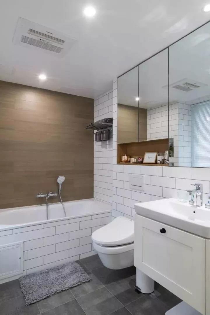 9、入墻的收納壁柜,而柜面則與洗手盆的鏡面連成一體,統(tǒng)一簡潔又實用。