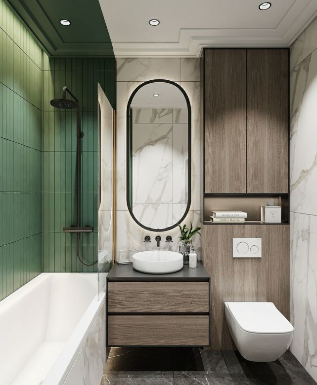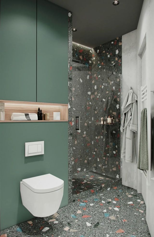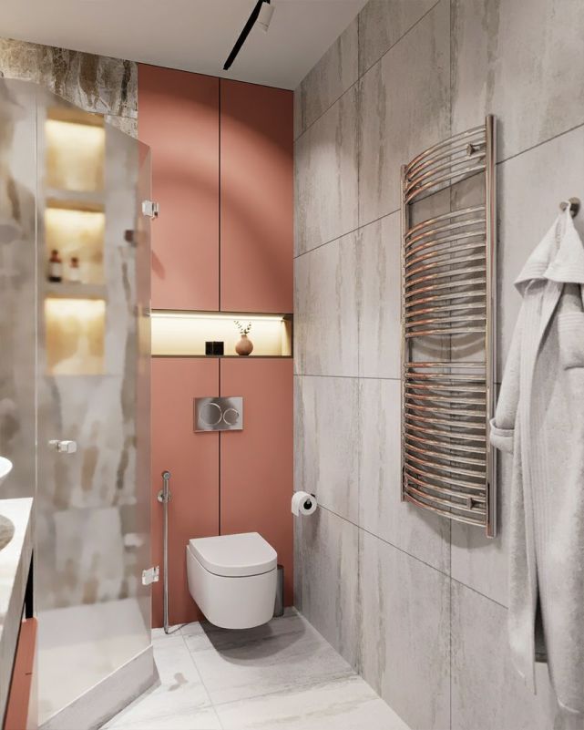 衛(wèi)生間管道多,用常規(guī)方法完全包起來(lái)太浪費(fèi)了??梢岳貌灰?guī)則空間在包管時(shí)設(shè)計(jì)壁龕,既能完美隱藏各類管道,不占空間面積,還實(shí)用美觀。