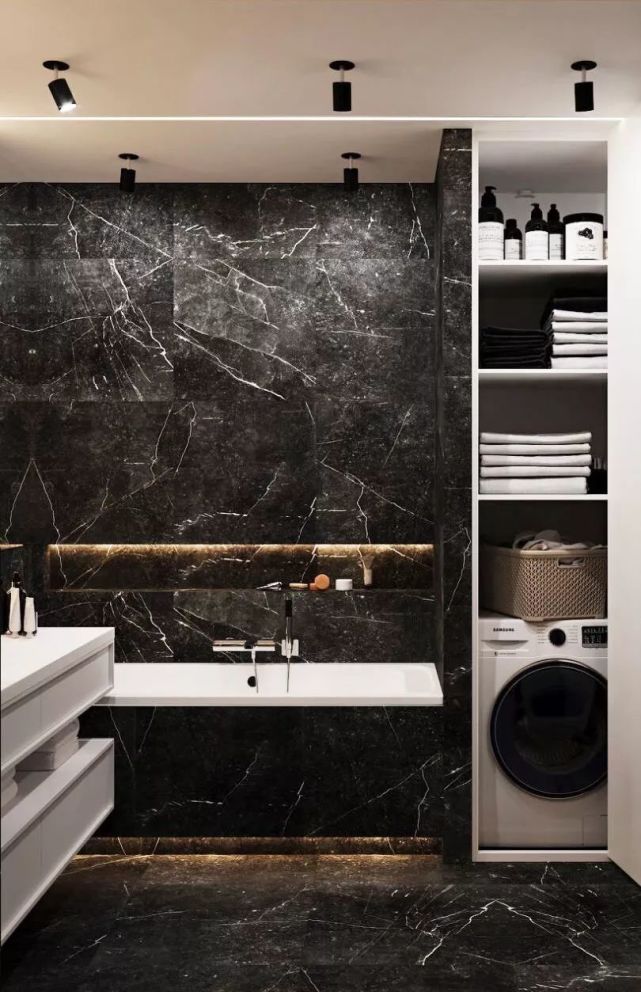 想要突顯衛(wèi)生間的氛圍,又希望進(jìn)行補(bǔ)充照明,可以在壁龕內(nèi)安裝暗藏式的防水LED照明燈帶,不僅能讓壁龕猶如藝術(shù)品般成為焦點(diǎn),還能增添溫暖柔和的氛圍。