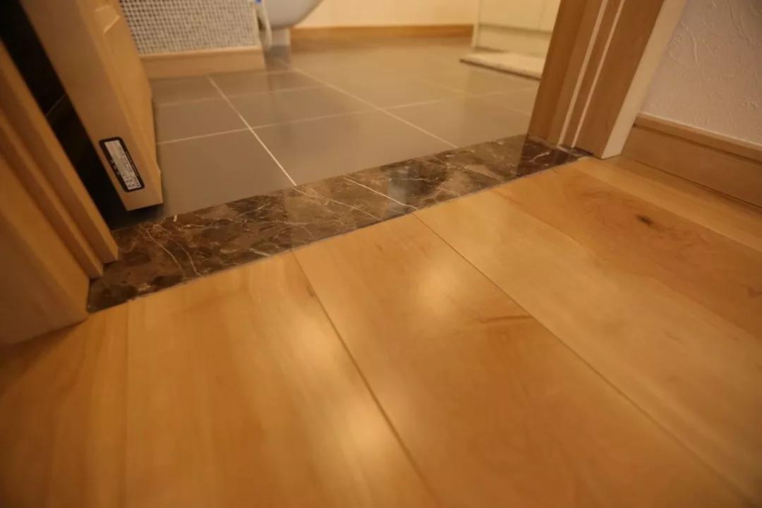 如果衛(wèi)生間內的瓷磚和外面的木地板直接接觸,這時候水就會慢慢滲透到木地板,甚至是其他地方,造成木地板的起拱和墻面的返潮。