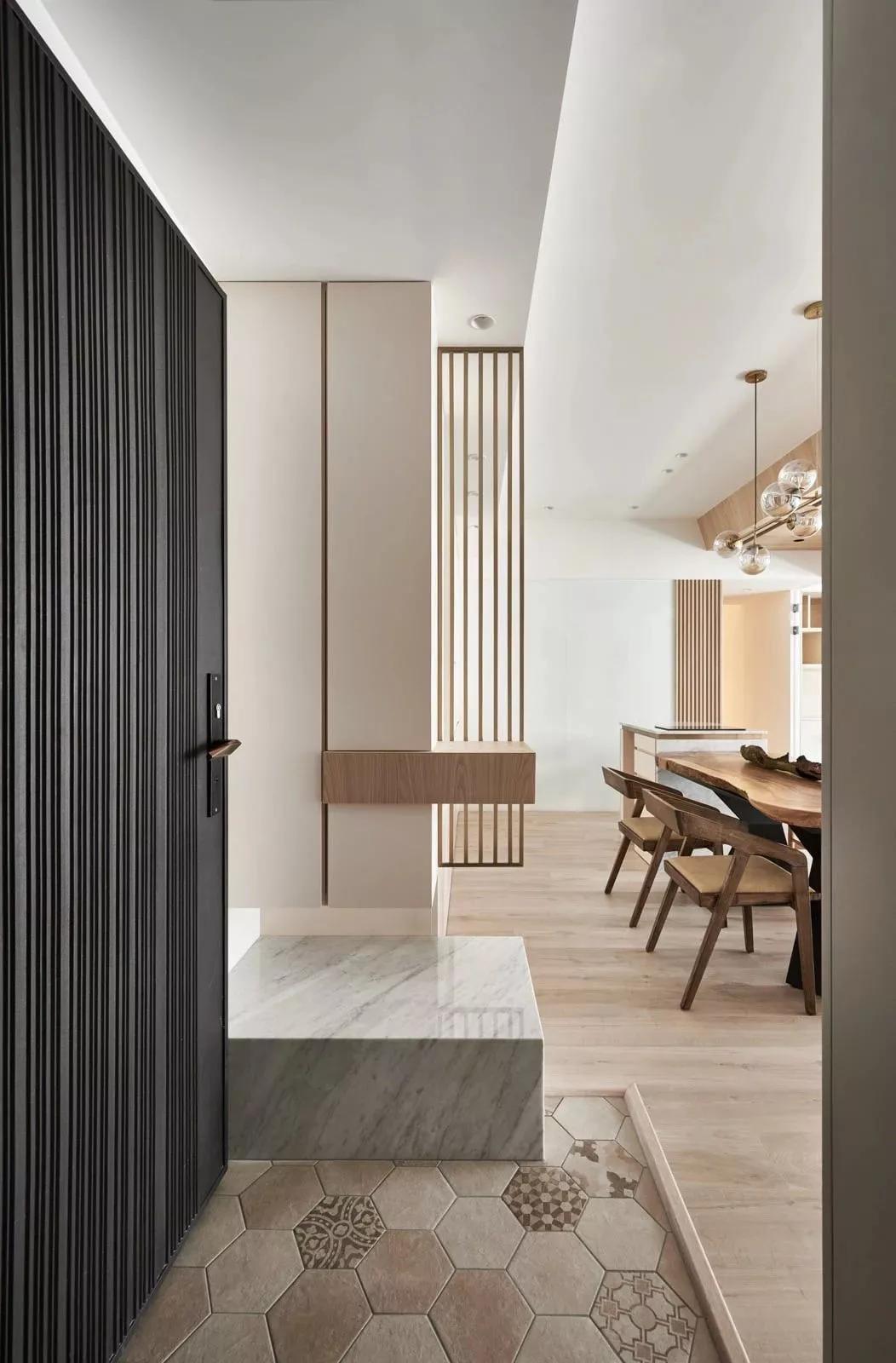 室內外兩種不同的材質之間,會有顏色的差距,安裝門檻石,可以起到視覺過渡的作用,降低空間的違和感,提高整體性。