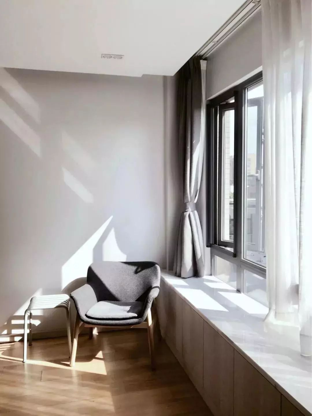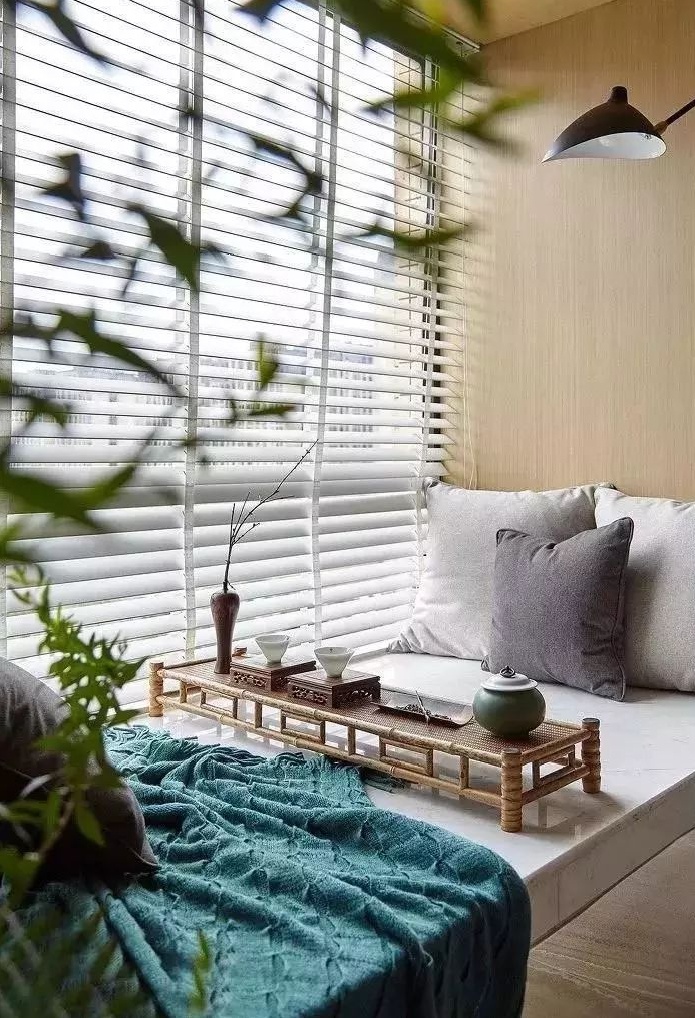 這種飄窗,搭配地臺(tái),成就一方清雅之所,在此喝茶、看書、都極其浪漫。