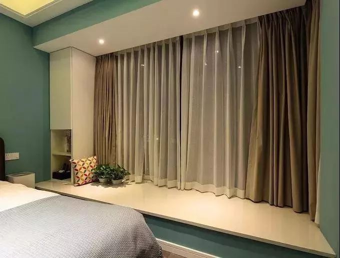 (1)飄窗和傳統(tǒng)的平窗有所不同,它的窗臺(tái)高度也比較低,使人有更廣闊的視野,更貼近自然。如果臥室配有飄窗的話不僅可以享受室外充足的光線照進(jìn)來,還可以作為不錯(cuò)的觀景臺(tái)來使用。