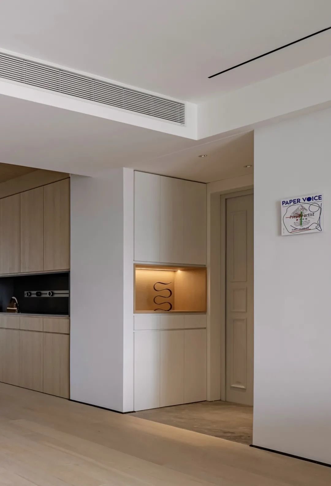 大門直面的位置做端景,打造家具儀式感。另一側做整墻鞋柜,方便且好用。