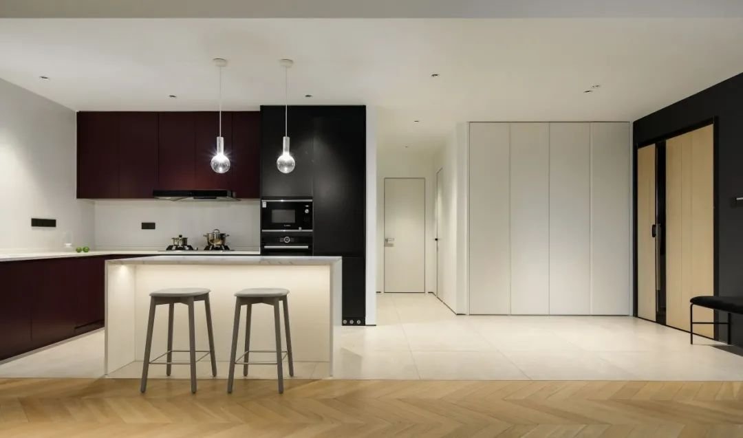如果你實在不知道怎么選,那就來最基礎的。深色或淺色木門板搭配白色柜門,顏值基本不會跑偏。