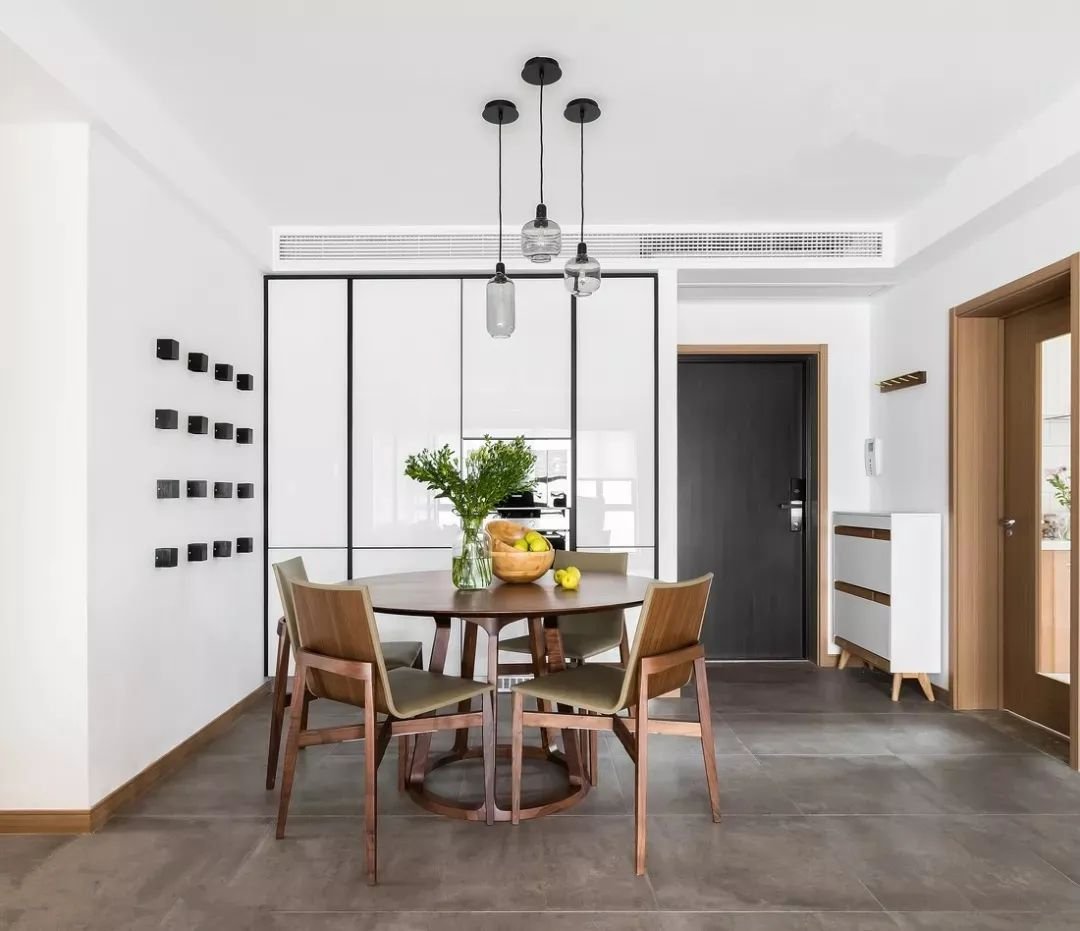 在戶型較小的居室內,應盡量避免絕對空間劃分。比如,一個完全獨立的玄關,可以利用不同的材質、造型,以及不同的家具以示區(qū)分。