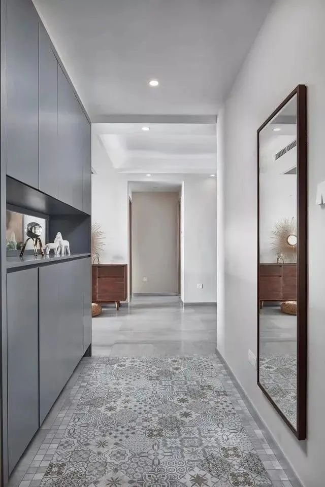 花磚也是近幾年比較火的設(shè)計(jì),小編覺(jué)得花磚很適合用在玄關(guān)處,用花磚來(lái)劃分出一個(gè)玄關(guān)的空間出來(lái),和客餐廳進(jìn)行分隔。