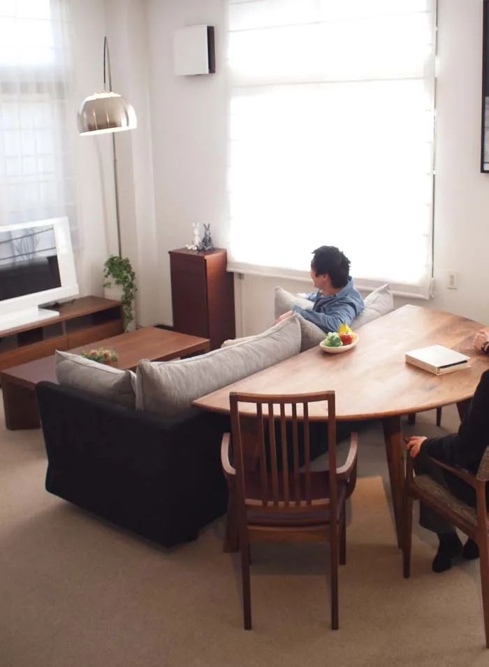沙發(fā)后面也是可利用的區(qū)域,用餐不耽誤看電視,別看只有小小一塊區(qū)域,但對于三口之家來說足夠了,還能兼顧辦公。