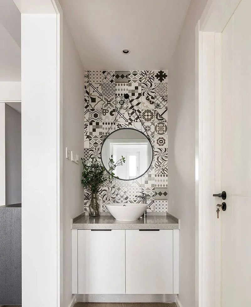 墻面建議貼好瓷磚,畢竟比起乳膠漆、墻紙之類的材質(zhì),瓷磚的防水能力最好,有水濺上去擦一擦就可以。