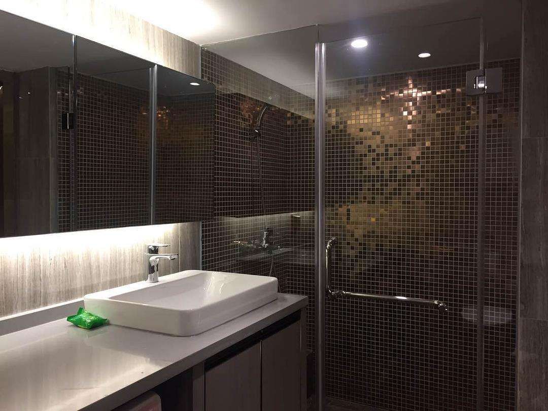 如果你覺得淋浴房用起來不舒坦,那可以考慮用隔斷來解決分離的問題。常見的衛(wèi)浴隔斷有兩種,一種是玻璃隔斷,另一種是半墻隔斷!